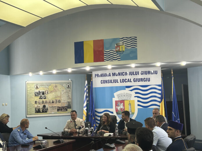 Astăzi, la ora 10:00, Primăria municipiului Giurgiu a fost gazda unei întâlniri oficiale între reprezentanții administrației locale și senatorul republican Nathan Dahn, din statul Oklahoma, SUA. Tema centrală a discuțiilor a fost raportul dintre guvernare și biserică, cu o comparație între modelul american și cel românesc de colaborare între biserică și autoritățile locale.