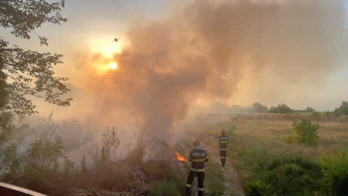 Pompierii din Giurgiu, implicati in stingerea incendiilor de vegetatie uscata