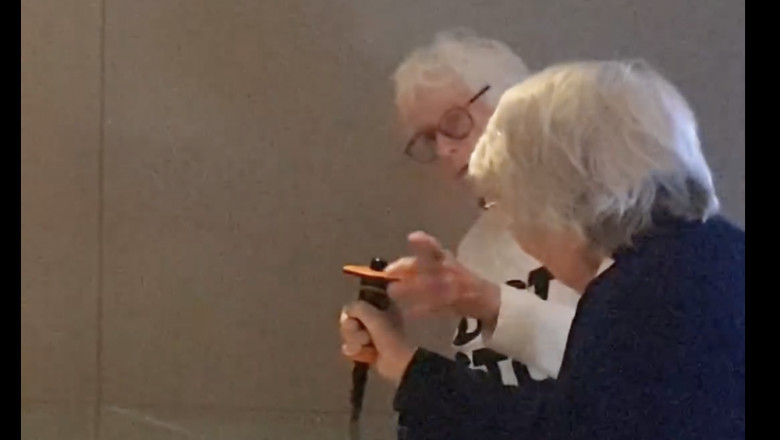 Cele două protestatare au deteriorat vitrina cu o daltă și un ciocan, afirmând că guvernul încalcă legile în ceea ce privește protecția mediului. Una dintre femei, în vârstă de 85 de ani, a declarat că este creștină și se simte „obligată să facă tot ce poate pentru a atenua suferința îngrozitoare” provocată de schimbările climatice.