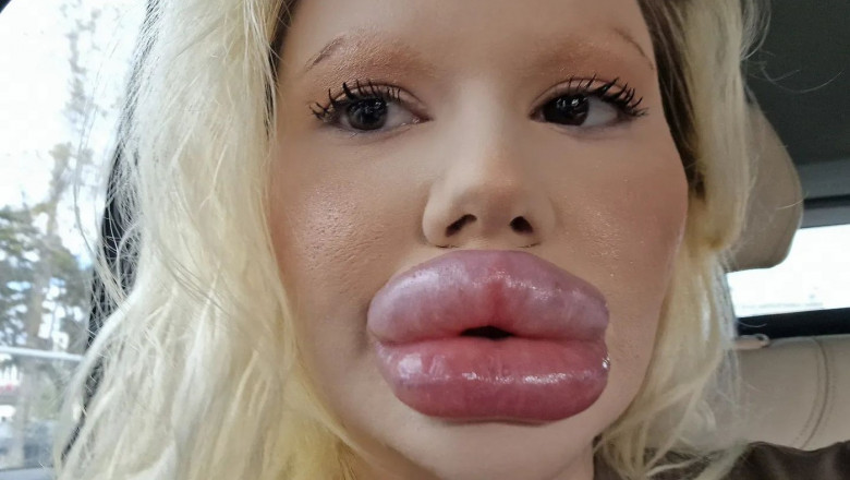 Galerie Foto: Femeia cu buzele cele mai mari din lume a fost nevoită să-și injecteze și nasul pentru ca fața să devină simetrică