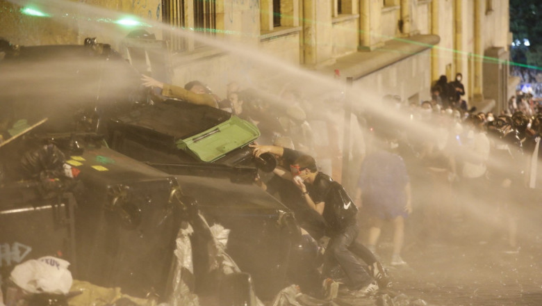 A fost a doua noapte cu proteste violente în capitala Georgiei, Tbilisi. Poliția a dat cu gaze lacrimogene și grenade asurzitoare în protestatarii care încercau să intre în parlament. Furia lor este îndreptată împotriva controversatului proiect de lege „a agenților străini”, care ieri a fost adoptat și în a doua lectură de Parlament, în ciuda mobilizării masive din stradă. Mii de oameni fluturând steaguri ale Georgiei și ale Uniunii Europene s-au adunat în fața parlamentului. De aproape o lună, oamenii ies cu zecile de mii, la demonstrații tot mai mari, iar cea de aseară a fost cea mai mare de până acum. Protestatarii au ridicat baricade și au dat foc, în timp ce polițiștii au folosit tunurile cu apă. Parlamentarii au aprobat miercuri cu 83 voturi pro și 23 împotrivă în a doua lectură controversatul proiect de lege „a agenților străini”. Proiectul de lege prevede ca organizațiile care primesc peste 20% din finanțare din străinătate să fie înregistrate ca agenți străini. Inițiativa vine de la partidul de guvernământ Visul Georgian și seamănă foarte bine cu o lege adoptată în Rusia, care a redus la tăcere vocile critice. Președinta țării, aflată în conflict cu guvernul, a promis să se opună prin veto. Însă Visul georgian are suficiente voturi pentru a-l depăși. Odată adoptată, legea ar putea distruge șansele Georgiei de aderare la UE. Partidul de guvernământ din Georgia dorește ca acesta să fie adoptat până la sfârșitul lunii. UE avertizează că acest proiect ar putea afecta parcursul Georgiei de aderare la UE. Protestatarii se tem că proiectul de lege ar putea fi folosit pentru a bloca criticile înaintea alegerilor parlamentare care vor avea loc în acest an. O lege similară, care a intrat în vigoare în Rusia în 2012, a fost folosită pentru a înlătura vocile care contestă politica de la Kremlinul - inclusiv personalități culturale marcante, organizații media și grupuri ale societății civile. O serie de lideri europeni au avertizat că proiectul de lege este „incompatibil” cu normele și valorile europene. Dar guvernul prim-ministrului georgian Irakli Kobakhidze rămâne ferm. Kobakhidze a acuzat ONG-urile că au încercat să organizeze revoluții în Georgia de două ori, că promovează „propaganda gay” și că atacă Biserica Ortodoxă georgiană. Președintele Comisiei Europene, Ursula von der Leyen, a declarat miercuri că urmărește evenimentele din Georgia cu „mare îngrijorare”. Într-o postare pe X, fost Twitter, ea a adăugat: „Poporul georgian vrea un viitor european pentru țara sa. Georgia se află la o răscruce. Ar trebui să mențină cursul pe drumul către Europa”.