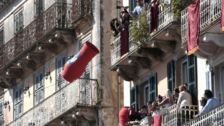 În Grecia, sărbătorirea Paștelui este marcată de un obicei neobișnuit, aruncarea vaselor de lut de la balcoane în momentul în care clopotele bisericii sună pentru a marca sfârșitul slujbei din Duminica Paștelui. Acest gest reprezintă alungarea spiritelor rele și este un simbol al noilor începuturi.