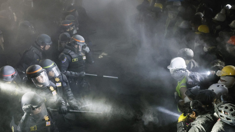Tensiunea crește în Statele Unite, acolo unde studenții pro-palestinieni continuă protestele față de războiul din Fâșia Gaza. Sute de polițiști încearcă să împrăștie mulțimea adunată în campusul Universității California din Los Angeles. Studenții au ridicat baricade într-o tabără de corturi, în locul în care ieri au fost lupte care au durat câteva ore. "Un lucru minunat de urmărit", a comentat fostul președinte Donald Trump intervenția poliției, care a evacuat zona. El i-a numit pe tinerii de acolo simpatizanți Hamas și i-a descris drept niște nebuni furioși. Protestele au cuprins zeci de universități americane în ultimele zile și în total, 1.600 de tineri au fost arestați în 30 de campusuri. Sute de poliţişti cu căşti şi-au făcut loc joi dimineaţa în piaţa centrală a Universităţii din California, din Los Angeles, în încercarea de a dispersa o tabără a protestatarilor pro-palestinieni atacată în noaptea precedentă de susţinătorii proisraelieni, informează Reuters. Poliția a început să înlăture baricadele studenţilor propalestinieni din Los Angeles. Acţiunea poliţiei la UCLA marchează cea mai recentă confruntare pe fondul tensiunilor în creştere în campusurile universitare din SUA, unde protestele împotriva felului în care Israelul gestionează războiul din Gaza au dus la ciocniri între studenţi şi forţele de ordine. Începând de miercuri seară, agenţi în echipament tactic au început să se adune în campusul UCLA adiacent unui complex de corturi ocupat de mulţimi de demonstranţi, potrivit imaginilor transmise de la faţa locului. Postul de televiziune local KABC-TV a estimat că între 300 şi 500 de persoane se aflau în interiorul taberei, iar alţi circa 2.000 sunt adunaţi dincolo de baricade. Dar poliţia comasată în zonă a stat ore în şir la marginea zonei de corturi, înainte de a începe în cele din urmă să-şi croiască drum în tabără în jurul orei 3:15 a.m. PDT (10:15 GMT) pentru a aresta ocupanţii care refuzau să plece. Raidul a fost condus de o echipă de ofiţeri din California Highway Patrol dotaţi cu scuturi şi bastoane. Demonstranţii, unii purtând scuturi improvizate şi umbrele, au încercat să blocheze înaintarea poliţiştilor prin simpla forţă a numărului lor, în timp ce strigau "împingeţi-i înapoi" şi încercau să-i orbească pe poliţişti cu flash-urile lanternelor. Unii protestatari au fost văzuţi purtând ochelari de protecţie şi măşti în aşteptarea asediului, la o zi după ce universitatea a declarat tabăra ilegală. Înainte de asalt, poliţia i-a îndemnat pe demonstranţi, în anunţuri repetate prin difuzoare, să elibereze zona de protest, o piaţă de dimensiunea unui teren de fotbal.UCLA a anulat toate cursurile de miercuri.