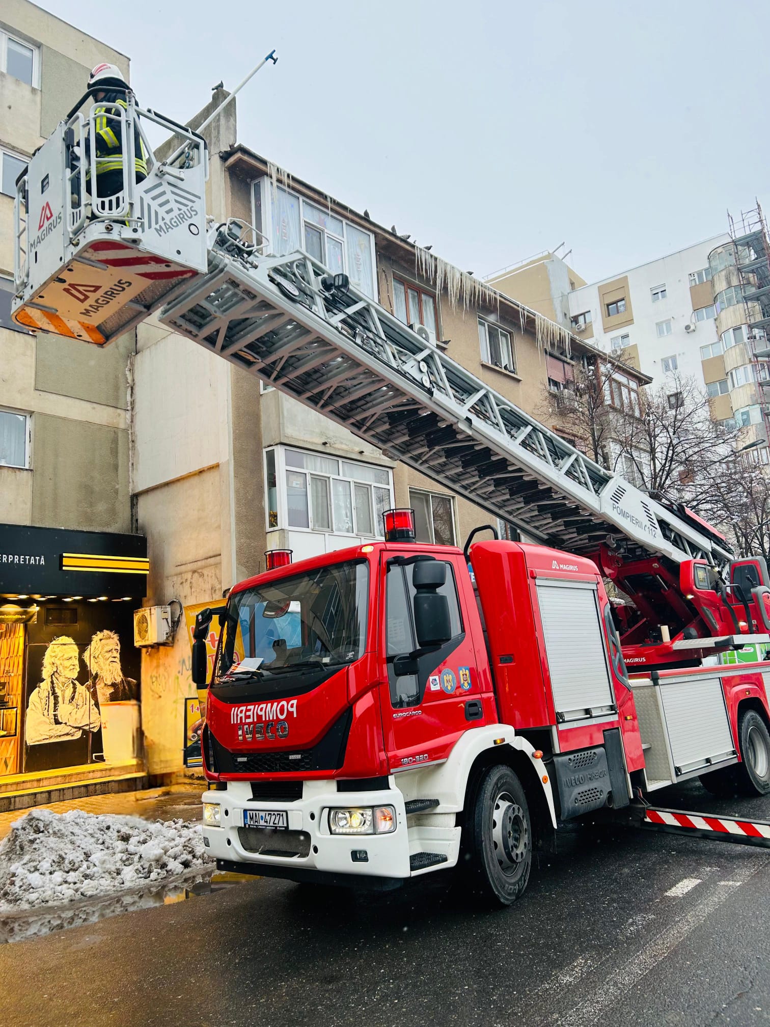 Pompierii din Giurgiu au acționat miercuri, 13 ianuarie, pentru a înlătura țurțuri mari formați pe șagicul unui bloc din strada Vlad Țepeș, o zonă foarte circulată. Conform ISU Giurgiu, intervenția a fost necesară din cauza riscului ca acești țurțuri să cadă peste trecători, iar operațiunea s-a făcut cu autoplatforma pentru intervenție și salvare la înălțime.